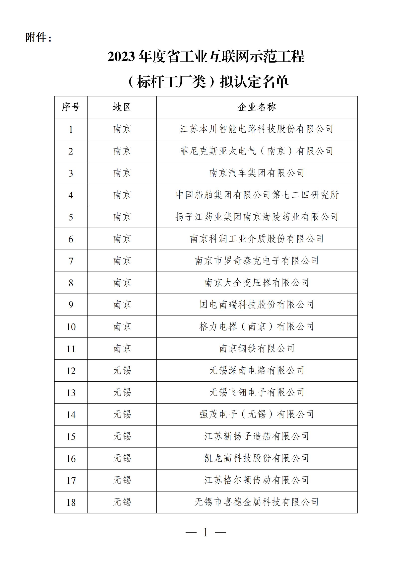 附件:2023年度省工業互聯網示范工程(標桿工廠類)擬認定名單