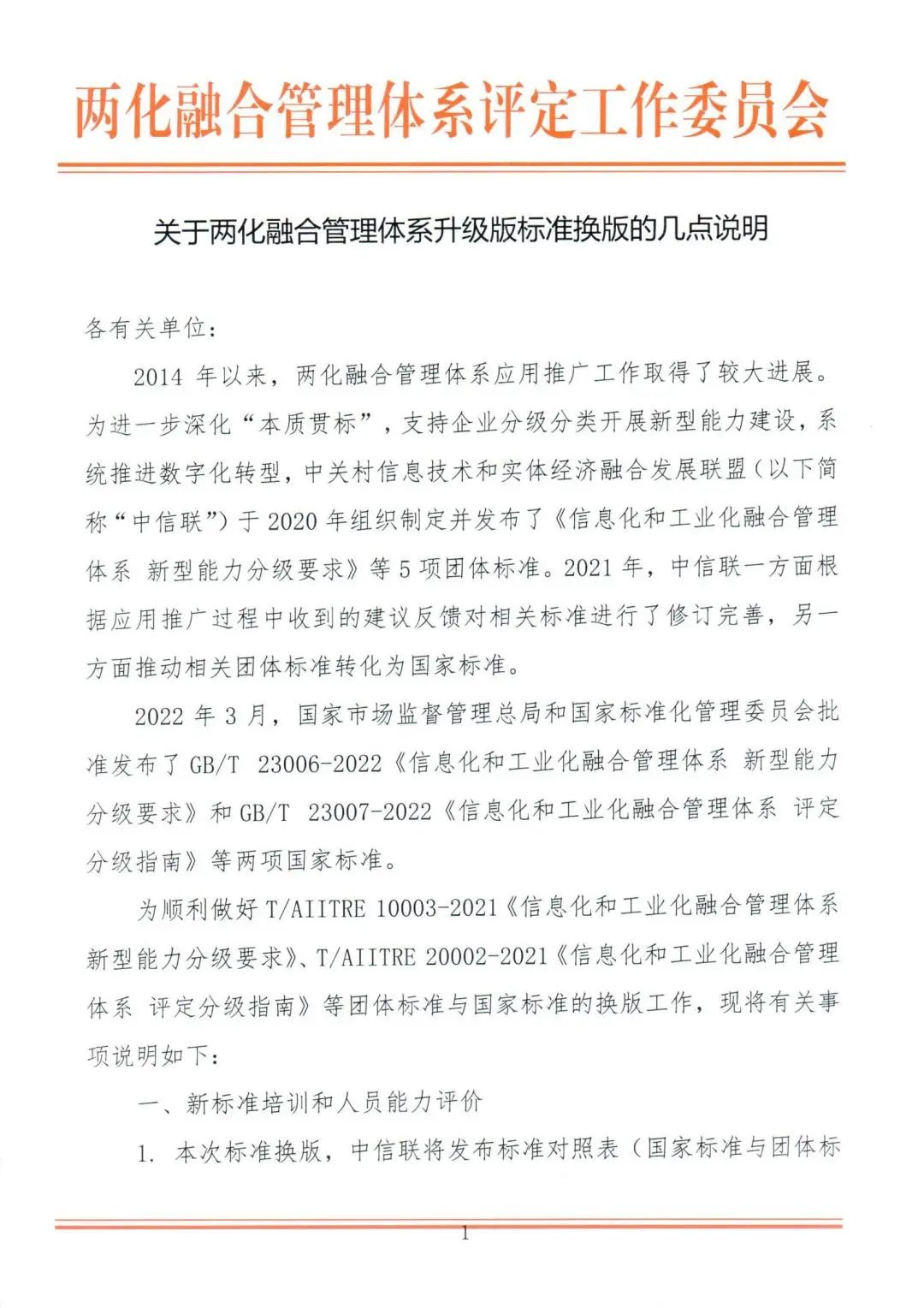 通知公告 | 關于兩化融合管理體系升級版標準換版的幾點說明
